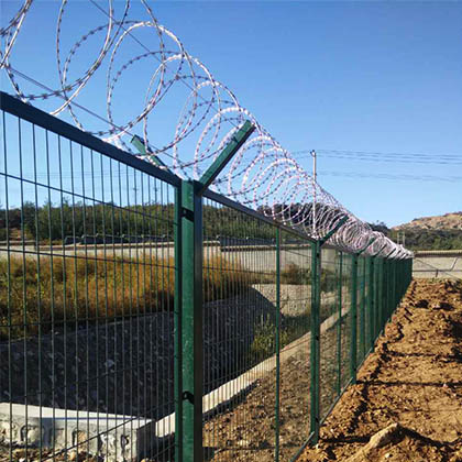 特點(diǎn):鋒利的刀型刺由雙線扣裝后成蛇腹?fàn)睿让烙^又讓人不寒而栗。起到了很好的阻嚇作用。同時(shí)具有美觀、防阻效果好、施工便利等優(yōu)