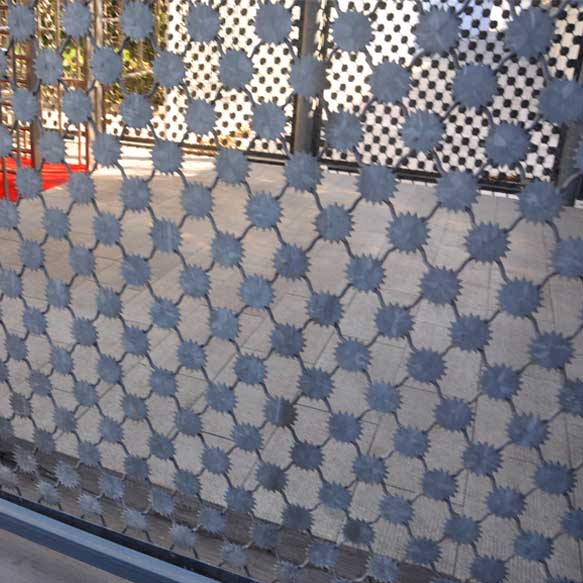 成正方形、長方形,也可以焊接成菱形,也可以直接采用刀片刺繩焊接網或鋼板網材料的網片,然后在網片的基礎上四周焊接邊框,防腐進