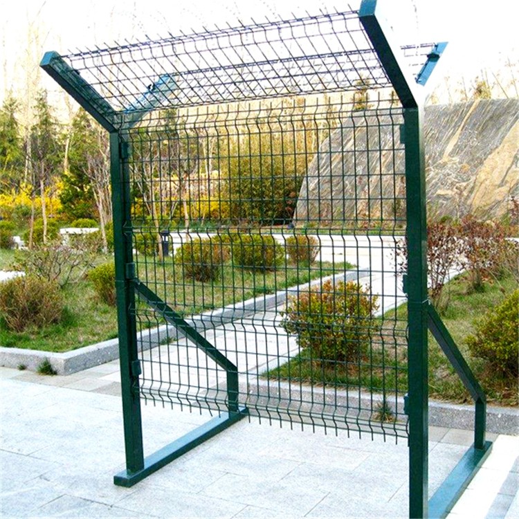 鋼筋網(wǎng)圍界因其由V型支架立柱、加強(qiáng)型焊接片網(wǎng)、安全防盜連接件和熱鍍鋅刀片刺籠組成可以有效防止行人攀爬跨越,可以提高安全防御,被應(yīng)用在飛機(jī)場上。機(jī)場圍界采用寬為2.5米,高度為2.5米的帶V型加強(qiáng)筋網(wǎng)片及60*60mm(80*80mm)的立柱組成,其中網(wǎng)片網(wǎng)孔為50*75mm、50*100mm、50*150mm,絲徑為φ5mm高強(qiáng)度低碳鋼絲,立柱壁厚為2-4mm,立柱頂端加裝φ500mm或φ600mm刀刺滾籠。
