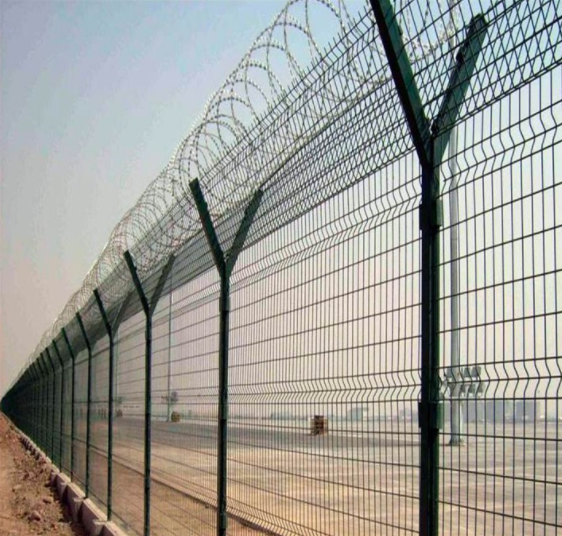 監獄護欄網又稱作“Y型安全防御護網”, 是由V型支架立柱,加強型焊接片網,安全防盜連接件和熱鍍鋅刀片刺籠組成強度和安全防御