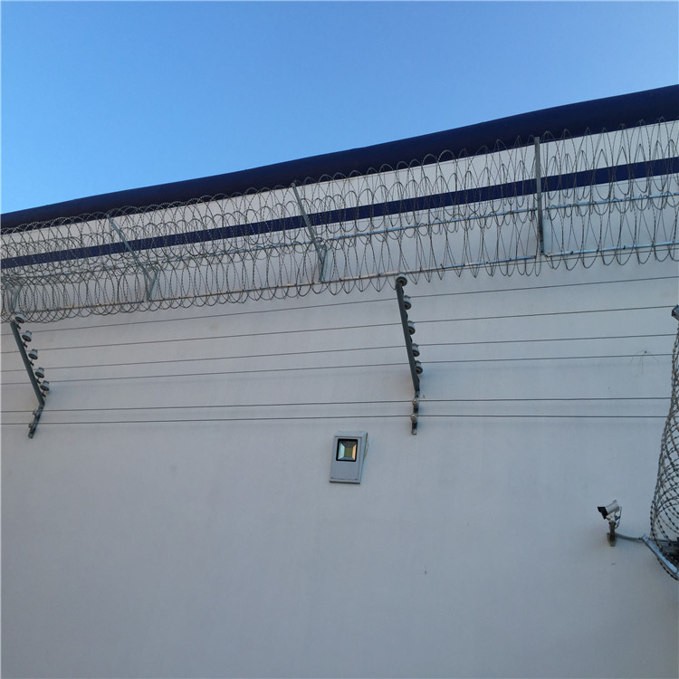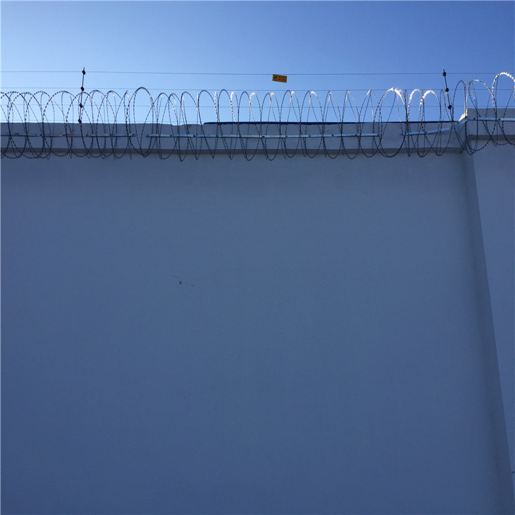 刀片刺繩防護網是一種新型防護網。品具有嚇阻效果好.美觀.施工便利.經濟實用等優異特點。刀片刺繩防護網主要用于園林公寓.機關單位.監獄.哨所.邊防等的圈禁防護。刀片刺繩防護網由銳利尖角鍍鋅鋼板或不銹鋼薄板做刀片,高張力鋼絲做芯線組合而成的阻絕器材。由于刀片刺繩防護網造形獨特不易觸摸,因而能達到比較好的防護隔離效果。直線形刀片刺網由刀片型直線刺網交叉焊接成型,可用于防盜窗、高速護欄、隔離柵。施工迅速、效果顯著。刀片刺繩防護網,有多種架設方式可供選擇,施工迅速,既省經費,又可達到嚇阻的效果。
