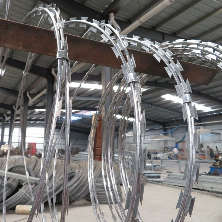 監(jiān)獄刀片刺繩是用在監(jiān)獄護(hù)欄網(wǎng)頂端的刀片刺繩,是一種新型防護(hù)網(wǎng),由銳利尖角刀片和芯線組成,刀刺、刀型整齊、刀片銳利、排列均勻致密、連接牢固。強(qiáng)度和安全防御性級(jí)別很高