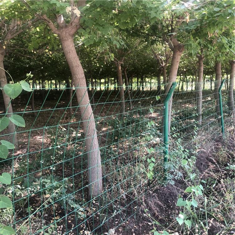 4、圈地護欄網立柱:48mm x 2mm鋼管浸塑處理;
