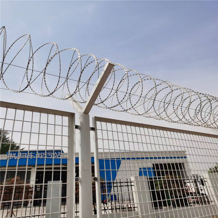 監獄護欄網又稱作“Y型安全防御護網”,是由V型支架立柱,加強型焊接片網,安全防盜連接件和熱鍍鋅刀片刺籠組成強度和安全防御性級別很高。現被廣泛應用在監獄,軍事基地等高安全場所。注:如果在監獄護欄網頂部加裝刀片刺絲、刀片刺繩后又很好的增強了安全防護性能。采用電鍍、熱鍍、噴塑、浸塑等防腐形式,具有很好的抗老化、抗曬、耐候等特點。其產品造型美觀、花色多樣,既起到圍欄作用,又起到美化作用。由于具有安全性高、防攀爬能力好,網片連接方式采用特制SBS緊扣件,有效防止人為的破壞性拆卸,橫向四道折彎加強筋,使網面強度顯著增加。
