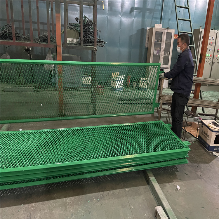 高速公路隔離柵采用鋼板網為主體,附以邊框以加強其整體性能并便于安裝,達到快速組裝的安裝目的。用的這個鋼板網就是防炫目網,也就是平時說的防拋網、金屬板網、鋼板拉伸網、金屬擴張網、鐵板網等。它的制作過程簡單的來說是金屬板經由沖剪機裁剪沖壓,形成網狀的張料物體,由于這種鋼板網的獨特構造,能夠改變光線直射過來的方向,使車輛和燈光一部分被阻擋,一部分被改變方向,只有少數部分被傳遞到人的眼睛里,起到了防止眼睛眼暈的作用。這樣既可以隔離上下行車道,又能有效的保障防眩設施的連續性和橫向通視,達到防眩、隔離雙重目的,是一種非常合理的高速公路護欄網產品。